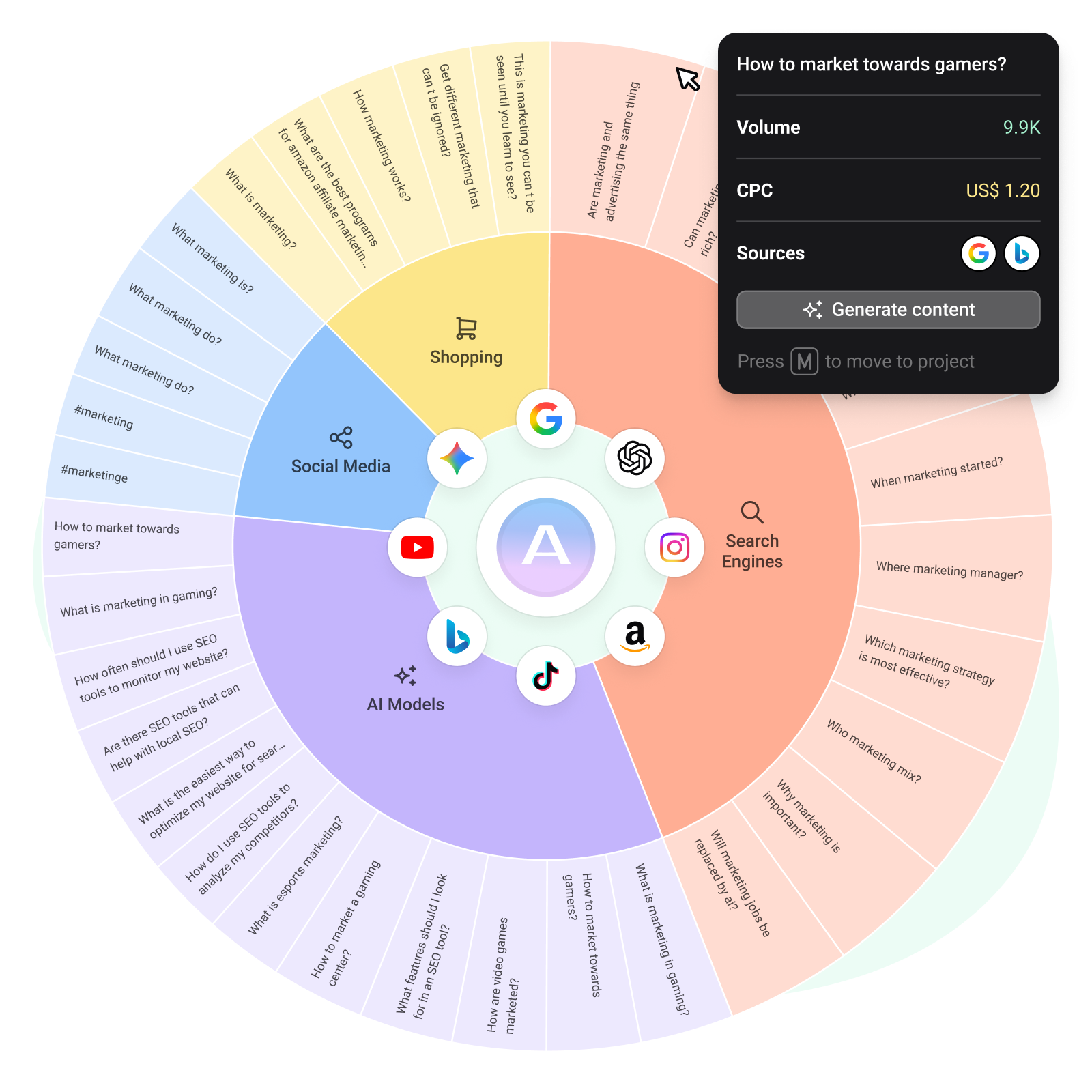 AnswerThePublic helps you discover user search queries and generate content ideas based on real questions.
